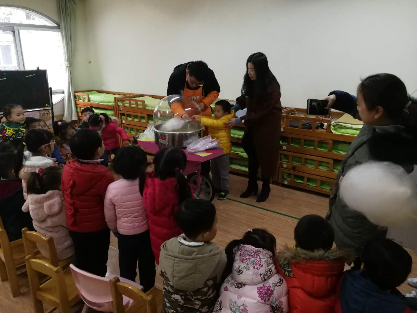 興觀室內(nèi)飄飛雪 樂嘗有愛棉花糖——“萌伢兒”同心團(tuán)的視味覺盛宴讓伢兒們樂開了花