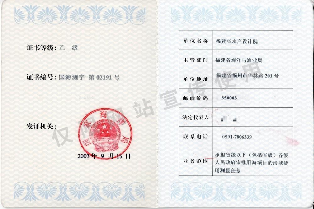 海域使用測(cè)量資質(zhì)證書(shū)