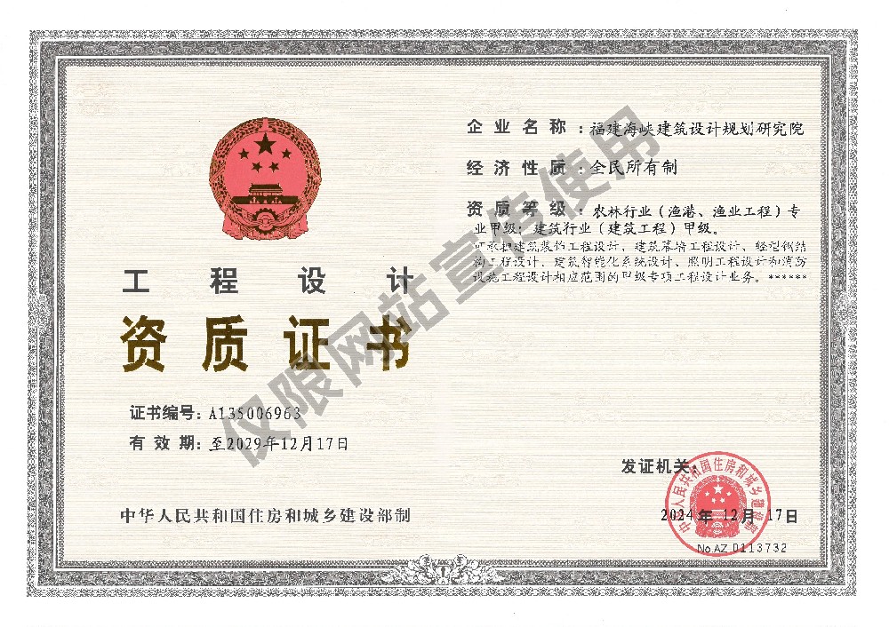 海峽院對(duì)外承包資格證書(shū)